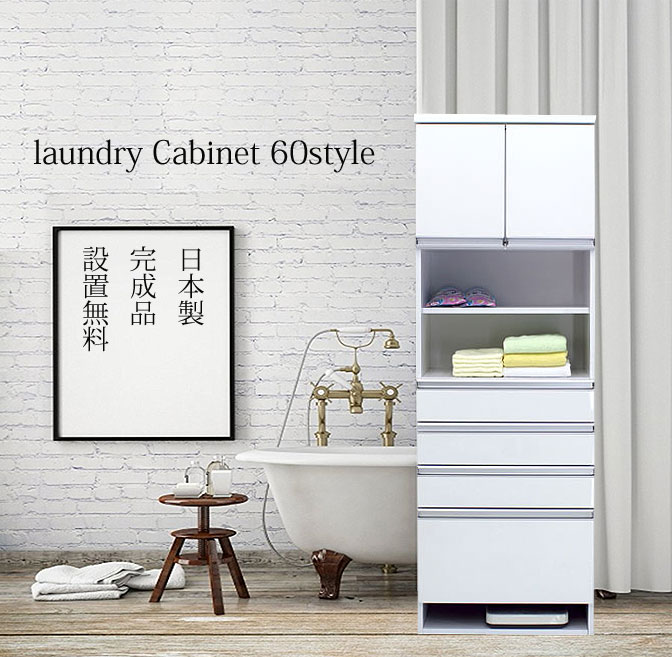 【開梱設置無料】洗面所 収納 薄型 サニタリーチェスト 収納キャビネット ランドリー収納 隙間収納 大川家具 サニタリー 幅60cm 奥行40 高さ180 送料無料 バスタオル収納 4段 鏡面 完成品 日本製 ホワイト サニタリーキャビネット シンプル コンパクト