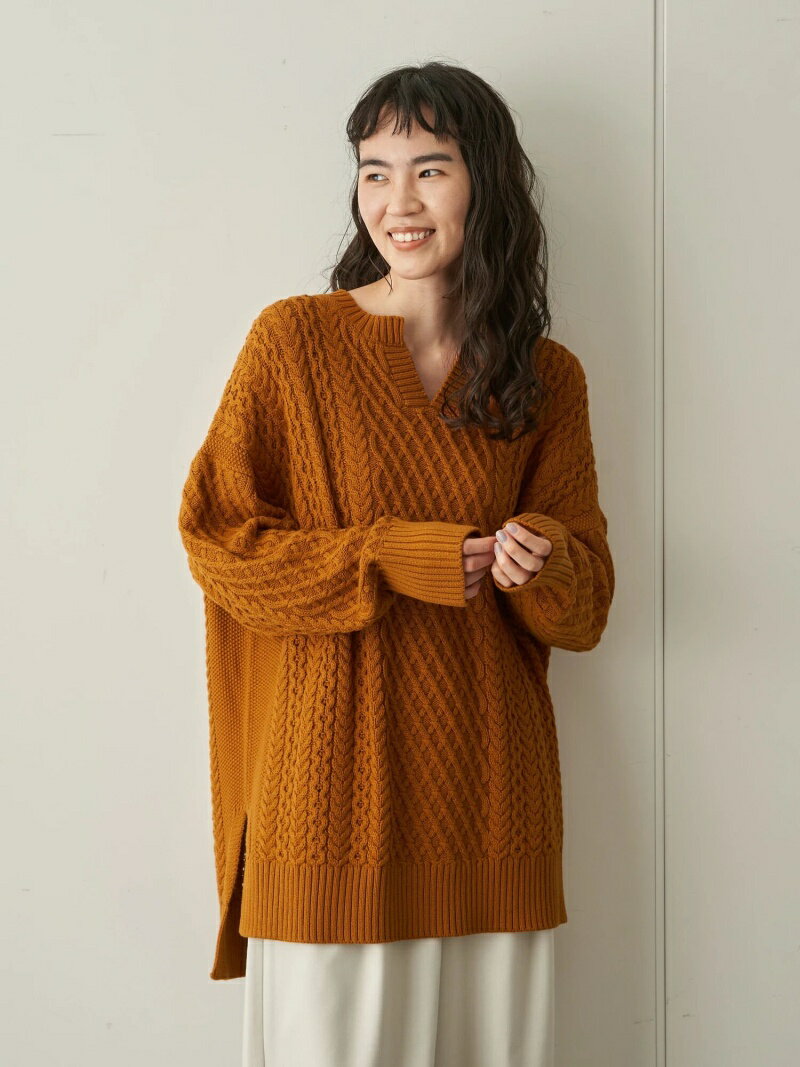 AMERICAN HOLIC(アメリカン ホリック)キーネックケーブルニットチュニック立体感のあるケーブル模様がアクセントに映えるニットチュニック。