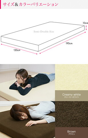 サイズ: (約)195cm×120cm×10cmセミダブルサイズ 重量: (約)8.2kg 材質: マットレス本体:高反発ウレタン(密度30kg/m3)カバー:ポリエステル100% 硬さ: 200ニュートン カラー: ・クリーミーホワイト ・ブラウン 特記事項: ※圧縮梱包されたままの状態で長期間保管した場合、マットレスが復元できなくなってしまいます。